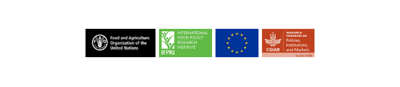 The dashboard and preparation of the study was funded by the FIRST programme, a partnership of the Food and Agriculture Organization of the United Nations and the European Union, and additional funding support from the CGIAR Research Program on Policies, Institutions, and Markets (PIM) led by the International Food Policy Research Institute (IFPRI). The FIRST programme provides policy assistance to governments of over 23 countries to create an enabling environment for food security, nutrition and sustainable agriculture. The contents of this page and the study are the sole responsibility of the authors and do not necessarily reflect the views of the EU, FAO, CGIAR or IFPRI.